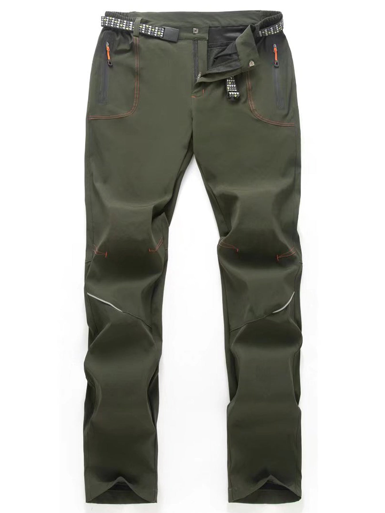Yomego Men's Lightweight Sport Pants with Reflective Strips, Breathable Casual Cargo Working Trousers with Belt and Multi Zipper Pockets,Water Resistant Quick Dry Pants for Outdoor Activities, Trekking, Fishing, Cycling in Spring ,Summer, Autumn