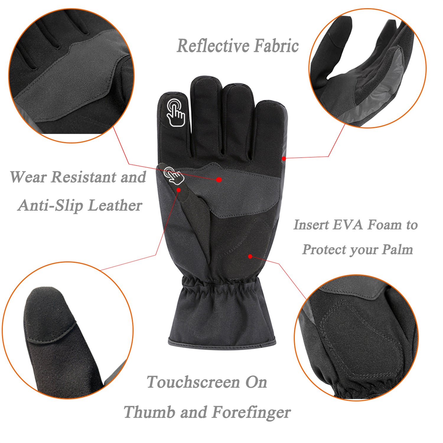 【Wear Resistant with Touchscreen Function】 : EVA Insert Protect You thumb Palm Position very well in case you fall down when do some sports outside, It also can Answer Phone calls,Texting messages when skiing, snowboarding and riding without taking off the snow gloves for Touchscreen devices. Skid Resistance Leather Palm provides strong grip, non-slip, ensures durable without easily tear and abrasion .This men womens ski gloves is an indispensable product for outdoor sports for Skiing, Hunting, Climbing,Hiking,Fishing in cold Weather.