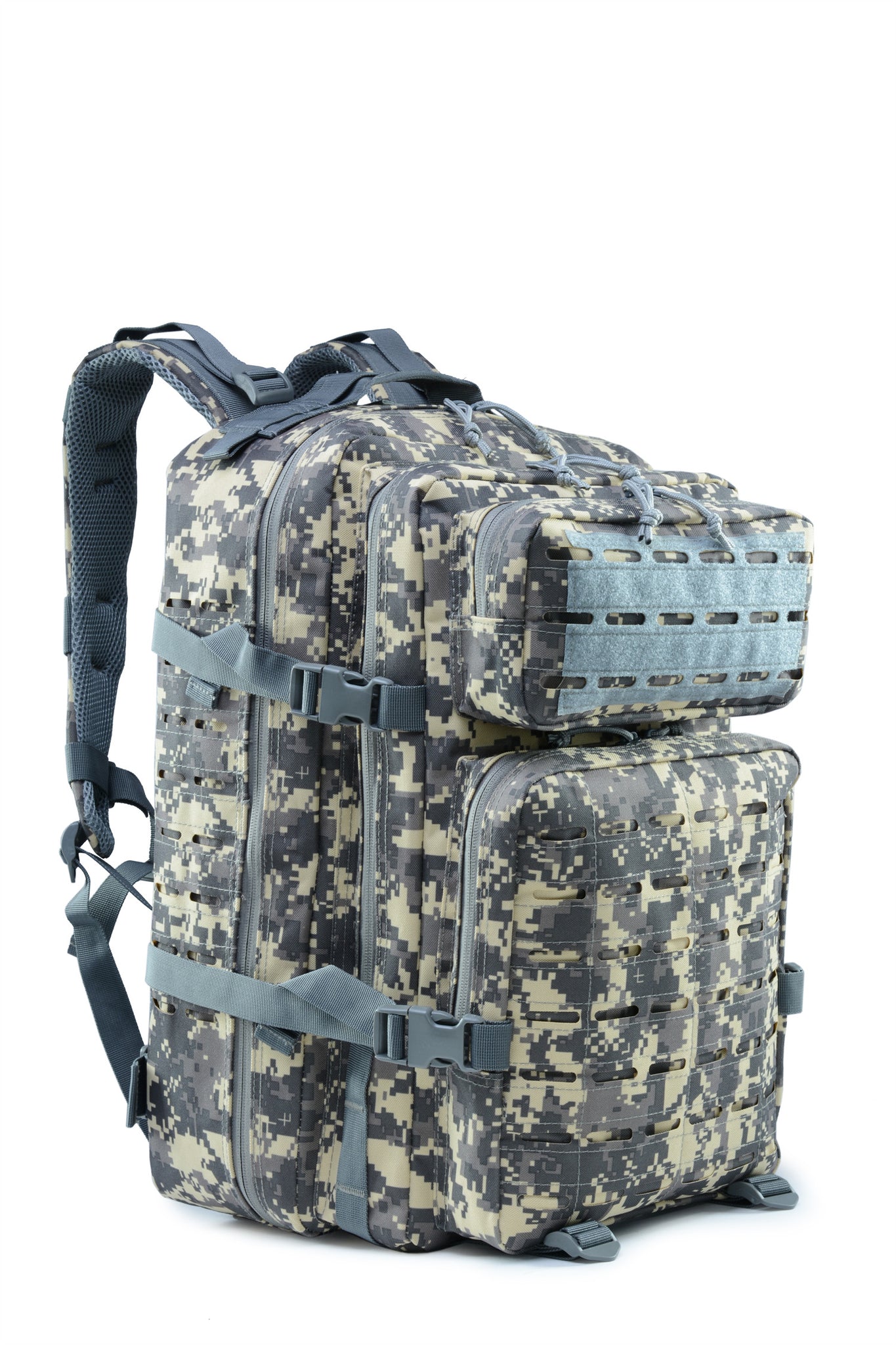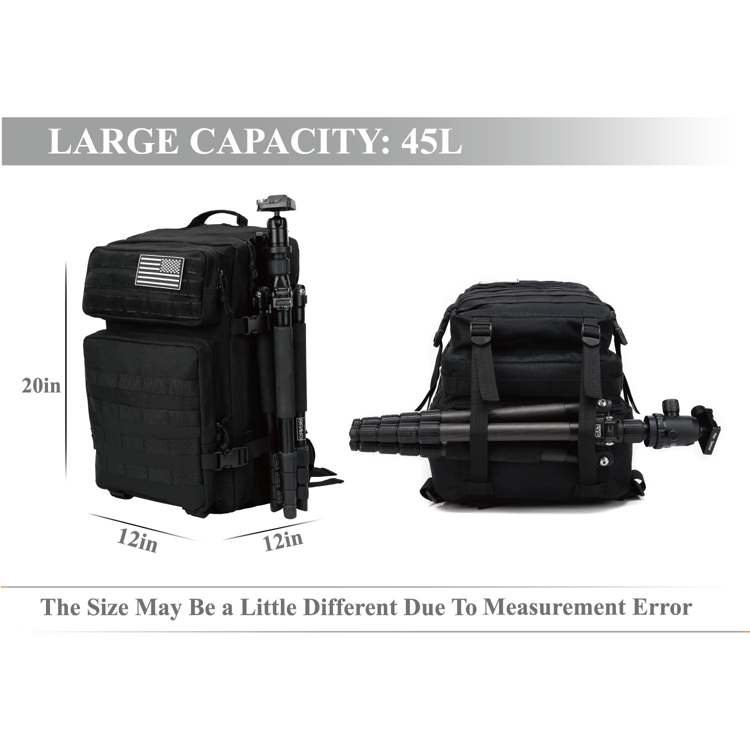 - LARGE CAPACITY MILITARY SURVIVAL GEAR BACKPACK : 3 Days Military Tactical Backpack is Good for Tactical Actions in Army, As well as some Outdoor Activities Like Hiking, Camping, Travelling, Hunting, Large Size is approx.:20"*12"*12" / 30*50*30CM (W*H*D), Capacity: 40-50L, Weight is about 2.75 LBs, Enough Space for 3 Days Travel.