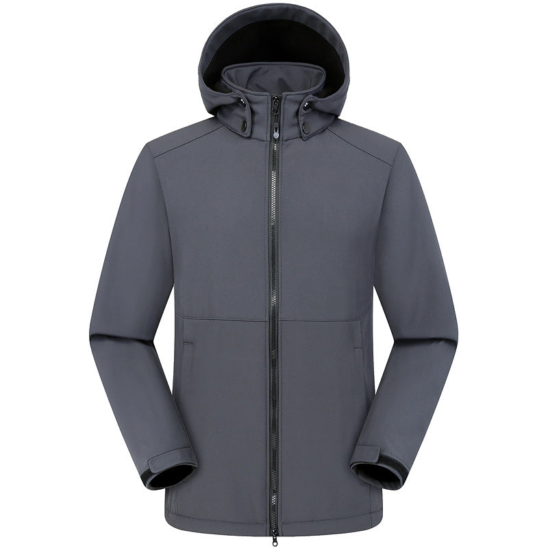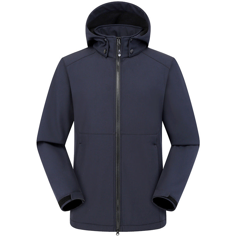 - Men's Outdoor Sports Hooded Windproof Jacket ,made from new high quality polyester material, which is waterproof, windproof, durable and stain repellent. wear resisting soft shell Jacket. Relaxed-fit style with quick-dry material.