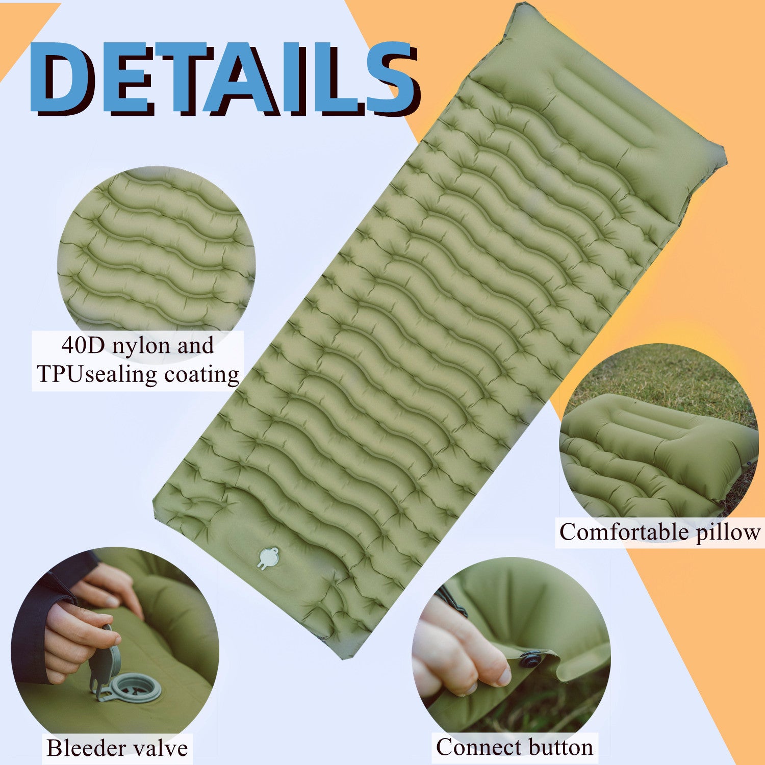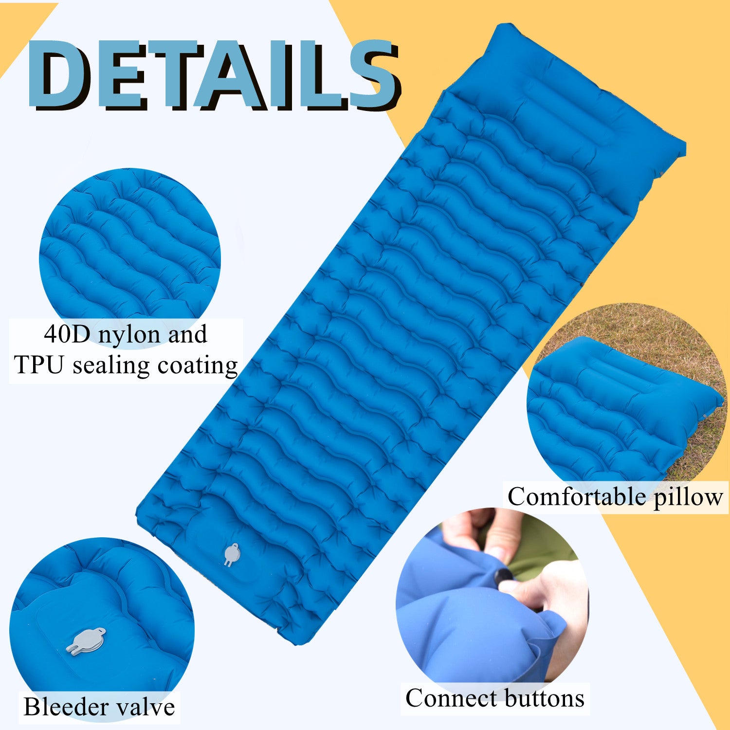 【Comfortable Camping Sleeping Pad】The camping mattress has a new design with multi-point support, more balanced and Comfortable, can isolate you from the cold floor, damp ground and hard stones,Good for your Healthy during your stay in outdoor