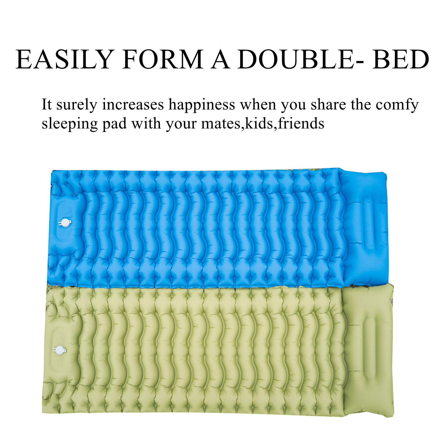 【Connectable Design】This sleeping pad is equipped with snap buttons on the sides, with which you can connect two or more sleeping mats together easily, so as to form a double bed or be whole family house in outdoor, which will perfectly fit the body curve and provide an excellent neck support